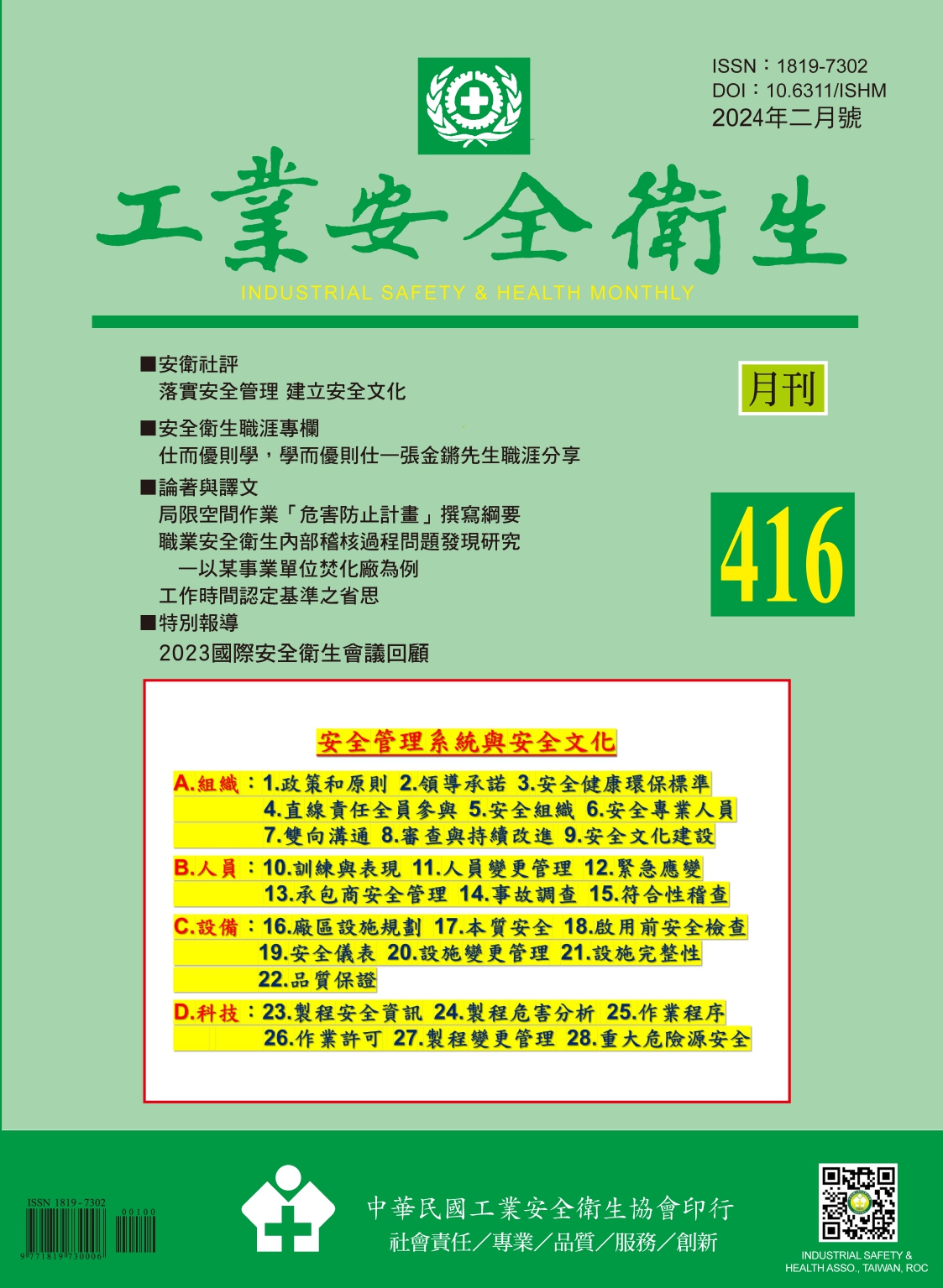 中華民國工業安全衛生協會-工業安全衛生月刊 第416期